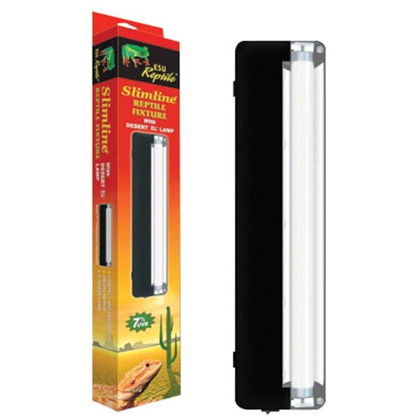 This fixture offers high-quality lighting, it is compact and lightweight, making it easy to install and suitable for applications where space is limited. The bulb simulates natural daylight while producing 7% UVB and additional UVA rays to promote proper calcium absorption and bone growth in reptiles. The acrylic lens protects the lamp and wiring. Fulfills photo-biological requirements of reptiles. The rugged construction gives it a dependable long life. A Desert 7 Reptile bulb is included. Fixture is UL listed, has a 5' power cord and an on/off switch. Good for up to a 20 gallon tank. Size 18 1/4" L x 4" W X 1 3/4" H.