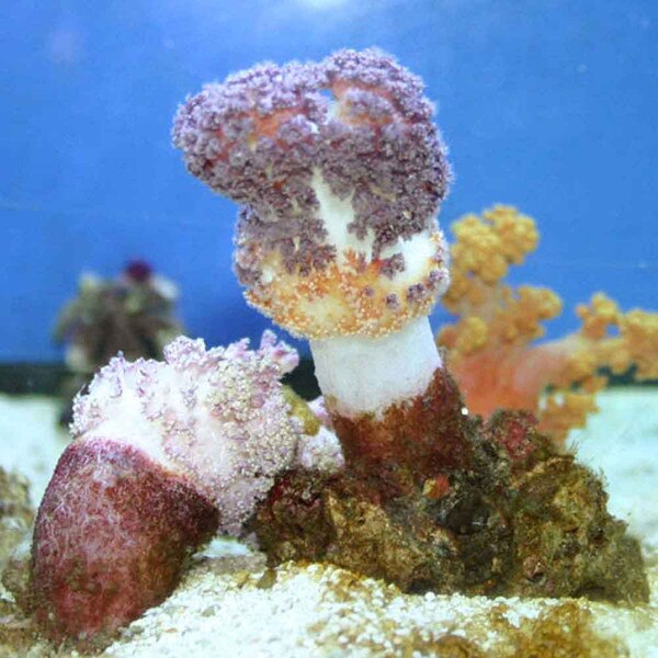 These corals are found in low light and even dark environments, like caves and under rock ledges. In the home aquarium, they can be kept under low or moderate light, and do best when hung upside down from the rockwork. They feed both by filtering particulate foods from the water column, as well as by absorbing nutrients directly from the water. They need a constant supply of food and will slowly starve if not provided with enough. These corals typically reproduce by "budding", in which a new colony or stalk will split from the parent colony under the right conditions.
