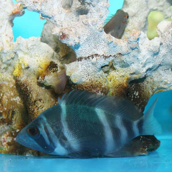 Great fish!! He is a beautiful neon blue color and is already holding his own against the other fish. He has the shape and look of a grouper without the size and aggression of one. Overall this is a great addition to any reef tank as long as you don't have fish that will stay under 2''
