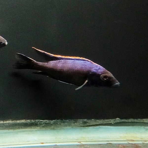 Otopharynx lithobates is also known as the Sulphur-Crested Lithobate. It has several different geographical variants, the most popular and well-known being the one from Zimbabwe Rock, Lake Malawi. Dominant males are dark metallic blue with a bright yellow blaze extending from the upper lip through the dorsal fin, while females are drab brown-gray.