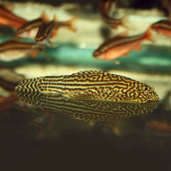 The Reticulated Hillstream Sucker is often mistaken for a type of pleco, but it is actually a species of loach. It prefers well-oxygenated water and stronger currents. For this reason it is important to provide an efficient filtration system as well as pump to create a current if necessary.