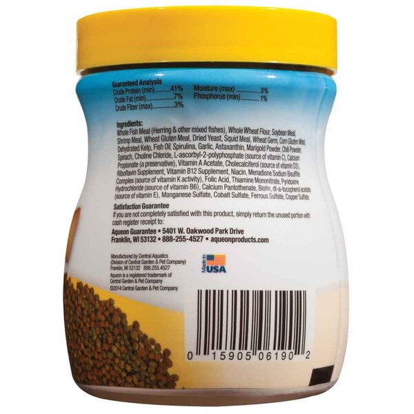 Aqueon Tropical Granules provide your aquarium fish with the daily nutrition they need to stay healthy and colorful! The precise blend includes only natural ingredients and is free of artificial colors. The slow-sinking granule is formulated for easy digestion, reducing excess waste in your aquarium!