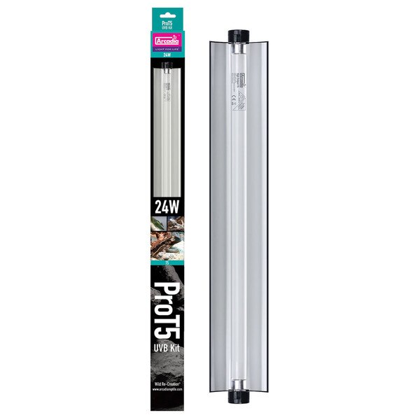 ProT5 is a highly adaptable lighting kit with high-quality internal electronics, a highly effective but removable reflector, power cable, fittings kit, free link cable, and Arcadia 6% Forest UV-B T5 bulb.