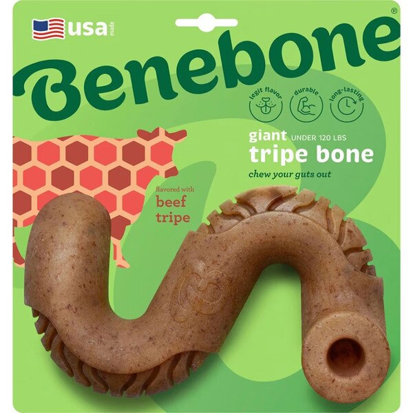 We know what you’re thinking — tripe stinks. That’s true, but with a bit of Benebone magic, your pup will dig it, and you won’t smell a thing! This squiggly chew is curved for a paw-friendly grip so your pup can quickly grab it and get a good chew going. Think about it: dogs don’t have thumbs. And as if the tripe flavor wasn't enough, the Tripe Bone includes pockets for an extra surprise! Stuff some peanut butter or cheese into the little pocket on the ends to keep your dog begging for more.