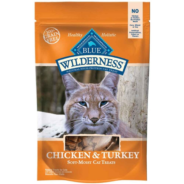 Your cat will love Blue Buffalo's Wilderness Cat treats! Each soft and semi-moist treat is made with real chicken and turkey as the first ingredients. The healthy mix of flavors perfectly satisfies your cat's natural eating desires. 100% grain free, Wilderness treats contain no by-product meals or artificial flavors or preservatives. Perfect for a post nail-clipping treat or to just show your cat you care!