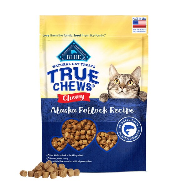 Give your cat a meaty reward worth remembering with BLUE True Chews cat treats. Proudly made in the USA with real Alaska pollock as the first ingredient, these delectable morsels are a natural treat guaranteed to get purrs of approval.