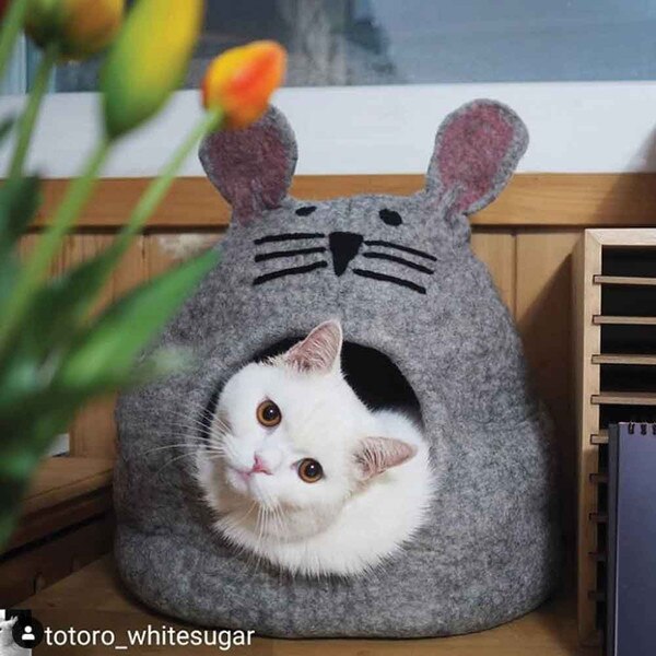 Care: Made with minimal chemicals, the lanolin in the wool helps to keep your pet cave naturally clean. For regular cleaning, it can be vacuumed or spot cleaned with a sponge. If it becomes very soiled, turn your pet cave inside out and wash in the delicate cycle of a washing machine. Do not put it in the dryer! Turn it right side out, stuff it with newspapers, and let it dry.