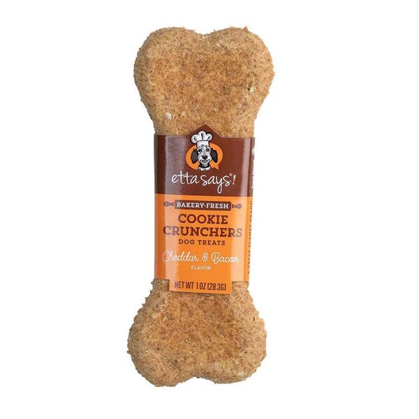 Etta Says! Cookie Crunchers are made from scratch with natural ingredients that are dough good, they will keep your dog crumbing back for more! Our cookies are baked with love and we’re spreading the word about our Cheddar & Bacon Cookie Crunchers.