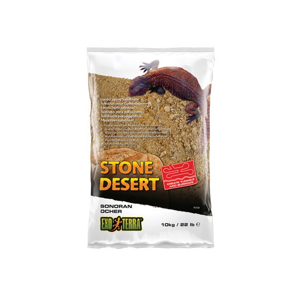 The Exo Terra Stone Desert mimics the natural soil found in arid regions, like deserts or savannahs. Most desert soils are not purely sand-based but rather a combination of sand, decomposed granite and clay resulting in interesting and sometimes colorful rock formations. Exo Terra’s Stone Desert allows you to create your own desert or savannah landscape, including cool-humid burrows as well as warmer elevated basking areas. The cool-humid burrows allow your reptiles to absorb the much needed moisture via their skin while sleeping or hiding, while the warmer elevated basking areas help your reptiles to thermoregulate by offering various important temperature gradients.