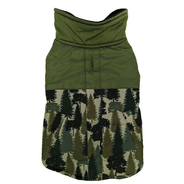 This handsome reversible dog coat looks great for any outdoor activities. Easy access leash hole.