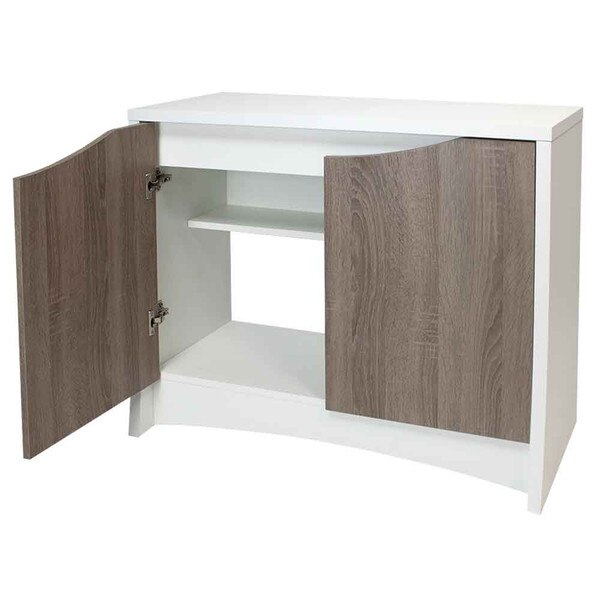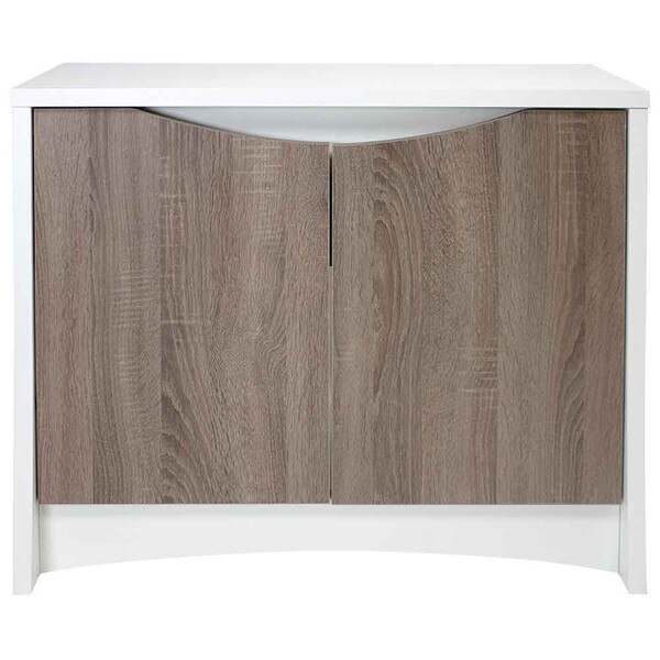 Sturdy cabinet in black with Ash grain-look doors and a gloss edge
