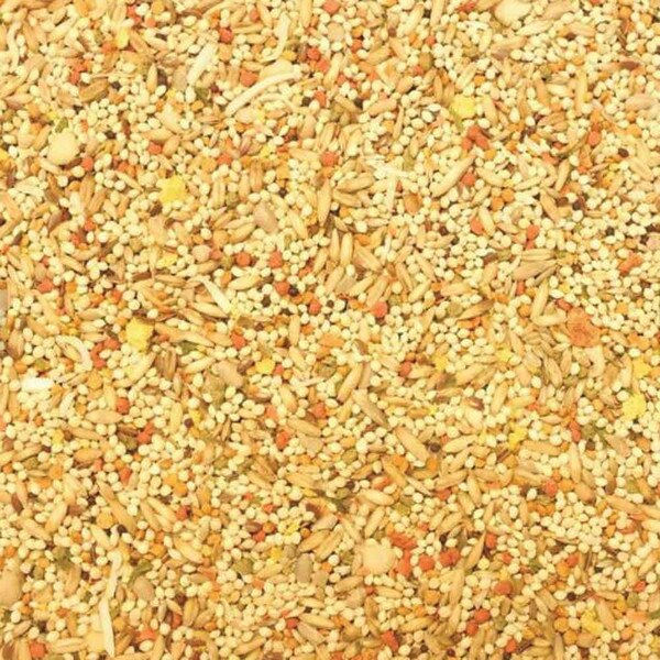 IngredientsWhite Millet, Oats, Canary Seeds, Red Millet, Wheat, Ground Corn, Flaxseed, Canola, Dried Egg Product, Brown Rice, Soybean Meal, Caraway Seeds, Flaked Carrots, Cashews, Coconut, Sunflower Seeds, Papaya, Pineapple, Sugar, Canola Oil (preserved with mixed tocopherols), Dicalcium Phosphate, Spinach, Calcium Carbonate, Salt, Algae Meal, Dried Enterococcus Faecium Fermentation Product, Dried Lactobacillus Acidophilus Fermentation Product, Dried Lactobacillus Casei Fermentation Product, Cranberries, Apples, Blueberries, Celery, Beets, Parsley, Lettuce, Watercress, Brewer’s Dried Yeast, DL-Methionine, L-Lysine, Choline Chloride, Mixed Tocopherols (preservative), Potassium Chloride, Rosemary Extract, Yeast Extract, L-Carnitine, Vitamin A Supplement, Vitamin D3 Supplement, Vitamin E Supplement, L-Ascorbyl-2-Polyphosphate (Source of Vitamin C), Zinc Sulfate, Ferrous Sulfate, Niacin, Folic Acid, Biotin, Manganese Sulfate, Copper Sulfate, Calcium Pantothenate, Thiamine Mononitrate, Pyridoxine Hydrochloride, Riboflavin Supplement, Zinc Proteinate, Manganese Proteinate, Copper Proteinate, Menadione Sodium Bisulfite Complex (Source of Vitamin K), Calcium Iodate, Sodium Selenite, Cobalt Carbonate, Vitamin B12 Supplement, Alfalfa Nutrient Concentrate, Turmeric, Annatto Extract, Beet Juice, Natural Citrus Flavor, Natural Banana Flavor, Natural Pineapple Flavor.