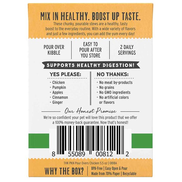 Mix in healthy. Boost up taste. Pour Overs are healthy & tasty pourable stews to boost to whatever is in your dogs bowl. With a wide variety of flavors, just a few ingredients, and an easy-to-use box, you can easily boost their bowl every day.