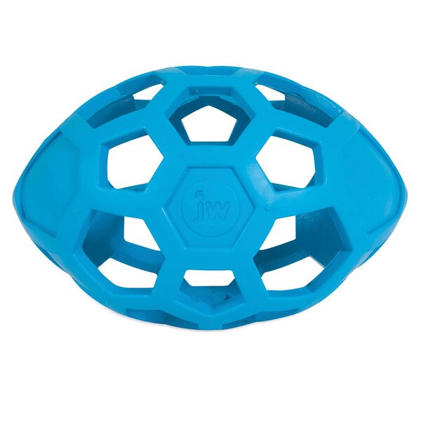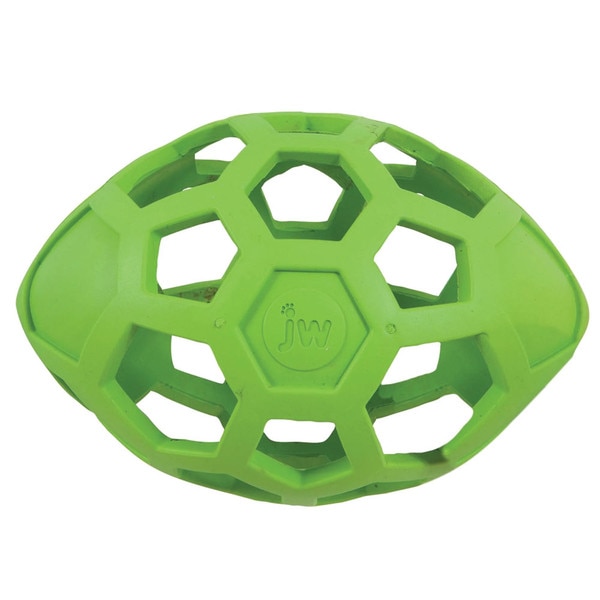 The JW Hol-ee Roller Egg dog toy plays off the do-it-all concept of the best-selling Hol-ee Roller to keep dogs engaged and entertained in a wide variety of ways providing essential mental stimulation. Perfect for gentle chewers and teething puppies. Tug it, fetch it, or stuff the center with a squeaky ball, toys, or treats to create a challenging puzzle for your dog. Made of durable natural rubber that is gentle on a dog's gums as they chew and teeth. Suitable for a wide variety of dog breeds. Ships in assorted colors: Green, Blue, and Orange. Measures 4" x 2.8" x 2.6"