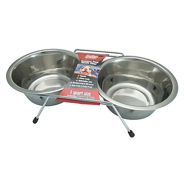 Ruff N' Tuff Double Diner stainless steel raised dog dishes are the perfect elevated dog diners. Both the frames and bowls are made of veterinarian recommended stainless steel. The frames feature removable rubber feet to prevent skidding, spilling and reduce noise. Because they are stainless they are durable, healthy, easy to clean, dishwasher safe, and bacteria resistant. Ruff N' Tuff Double Diners are also one of the most affordable raised dog dishes available.