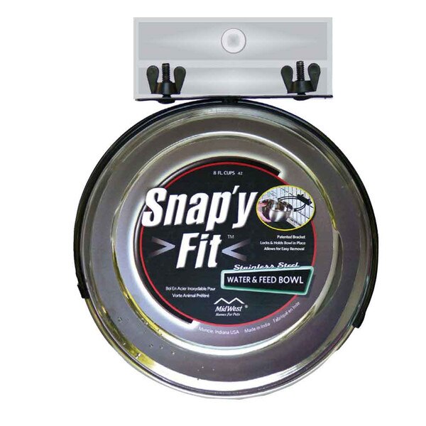 Snap'y Fit Dog Bowls from Midwest are the ideal bowl for dog cages and crates. The patented locking design prevents the bowl from sliding, eliminating spills and messes. Great for water or food, the rust-proof stainless steel bowl holds 2 quarts.