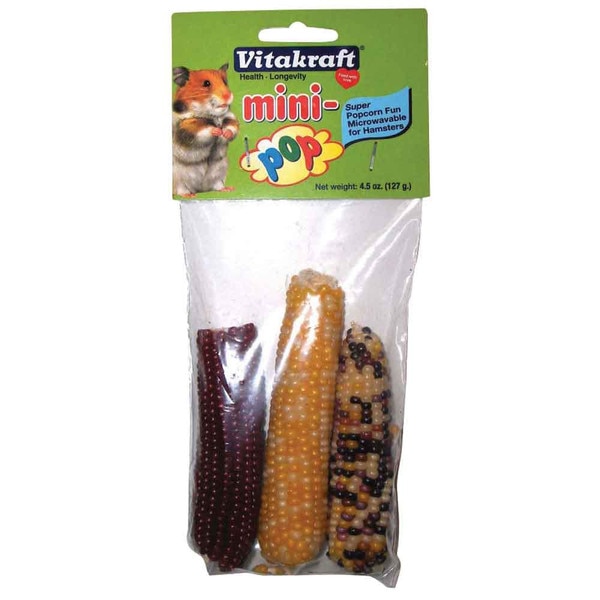 Is your small pet craving a fun, different, and exciting snack? They'll love Mini Pop. Real ears of corn are delicious, crunchy treats just as they are, or microwaved for a fun popcorn treat. A great new treat sure to bring variety to your pet's diet. Great for rabbits, hamsters, and other small pets.