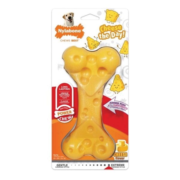 Now that's funny! We dog-ified everyday objects to introduce extra fun and flair to your dog's chew toy collection. This Power Chew Cheese dog toy features a cheese-inspired shape and tasty flavor for a one-of-a-kind chewing experience. Fill the multiple flavor pockets with spreadable treats to make chew time extra special! Plus, the flavor pockets' unique texture helps clean teeth as your dog chews. Made from our most durable material, this cute dog toy promotes healthy, non-destructive chewing habits and will make your dog (and you!) giddy with joy.