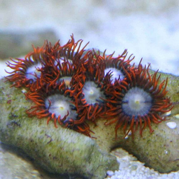 Zoanthid polyps are one of the collector's items of the reef trade. Many different color varieties and combinations exist and are sought after within the trade. They are easy to frag and can spread to cover a surface rapidly under the proper conditions.