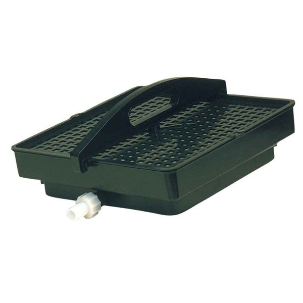 The Pondmaster 1000 garden pond submersible filter is designed for ease of use and reliability. It can be used with any submersible pump with a flow rate of up to 500 gph. This filter also has a modular design allowing the units to be connected together for larger ponds with more biological load because of higher fish population or abundant plant growth. It can also be used in as little as 6 inches of water. The heavy-duty handle and quick disconnect coupling make removal from the pond easy. The coupling also has garden hose threads for adaptability. The filter is designed to connect to the intake of the submerged pump by use of a supplied flexible vinyl hose.