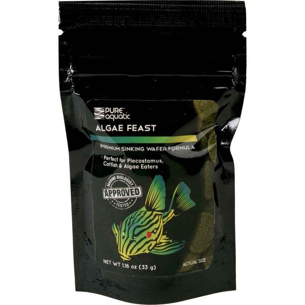 Pure Aquatic Algae Feast Sinking Wafers include spirulina, wheat germ meal and other vegetable matter to provide your herbivorous bottom feeders with outstanding nutrition and conditioning. Perfect for plecostomus, catfish and other algae eating species. Fortified with stabilized vitamin C to boost immunity. Marine Biologist tested and approved.