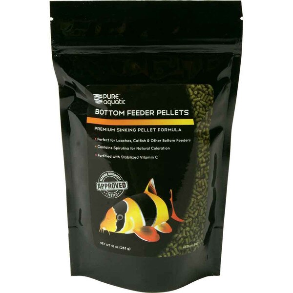 Pure Aquatic Bottom Feeder Pellets are specially formulated to meet the nutritional requirements of bottom-feeding fish such as Loaches and Catfish. This formula contains 43% protein to encourage fish growth and development. Fortified with stabilized vitamin C to boost immunity, the pellets also contain spirulina algae, a natural color enhancer. Marine Biologist tested and approved.
