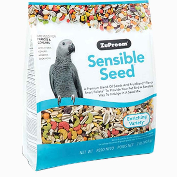 Feel good about letting your bird indulge in this new all natural seed blend by ZuPreem! Sensible Seed is a premium blend of seeds and FruitBlend flavor smart pellets that keep your feathered friend happy and engaged. And with larger sized pieces, Sensible Seed also cuts down on wasted food, making it the smartest choice for you and your bird.