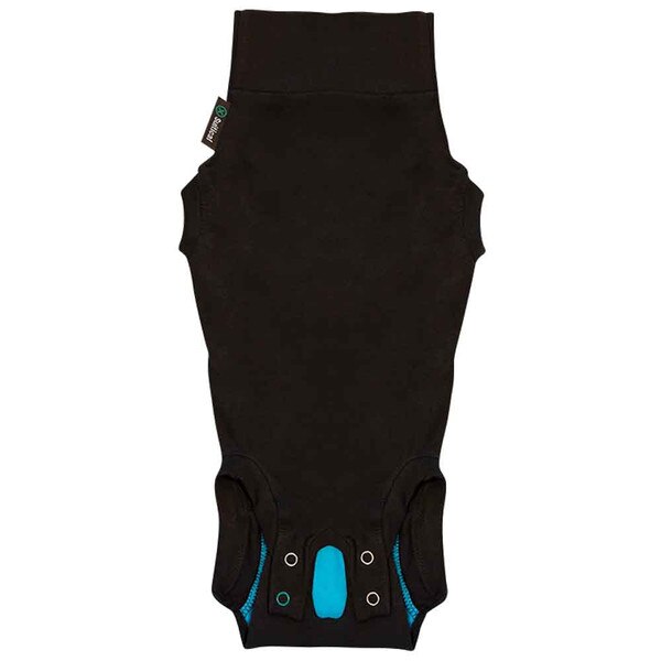 The Recovery Suit(R) reduces the risk of blood or urine stains in your house. In the event of blood or fluid loss, a sanitary towel can be applied on the inside of the suit or between the double layer. In contrast to standard in season shorts it is very difficult for your pet to wriggle out of the Suit. Making this a safe and hygienic alternative for in season shorts!