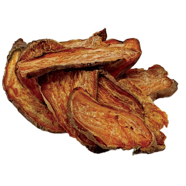 This is a tough dog chew that is a natural rawhide replacement that helps with dental health and hygiene. Sliced thin and made with no additives, soy, wheat, yeast, or anything else other than sweet potatoes.