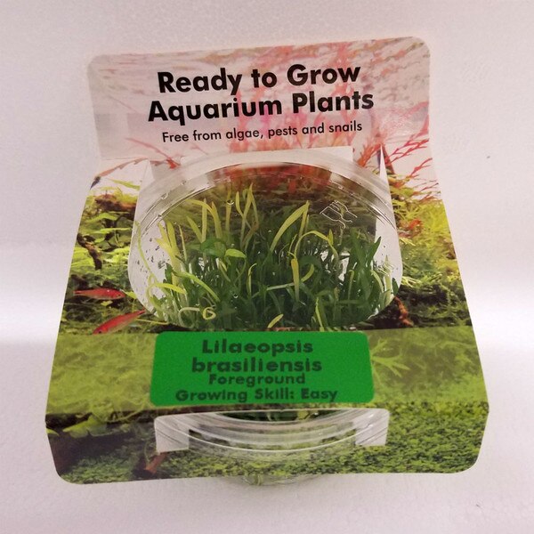 Lilaeopsis brasiliensis, also known as "Micro Sword", is a foreground plant similar to grass in appearance. The plant grows to average height of between 2 and 5 inches, forming thick mats. It requires supplemental nutrients and very high lighting to thrive. The plant may survive but will not thrive or stay as compact in lower light conditions. Micro Sword can tolerate very low salinity brackish water environments.