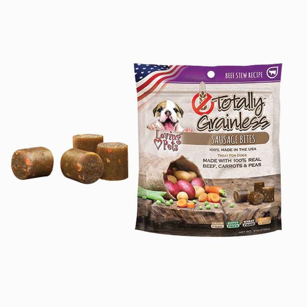 This soft chew treat is great for adult and senior dogs of any size, and are just the right size for a reward. Totally Grainless Sausage bites are made 100% in the USA and are 100% grain, wheat, gluten, and corn free.