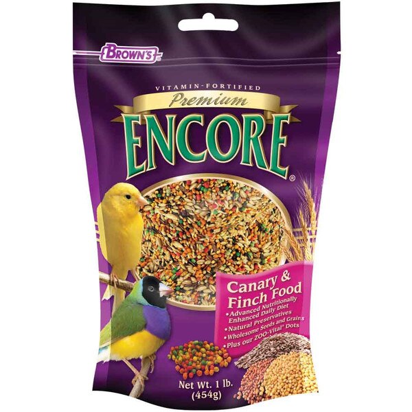 Encore Premium Bird Food is packed with vitamins and natural ingredients, making it the perfect food for your feathered friend! Great for canaries and finches, the food contains millet, canary seeds, oat groats and all of your bird's favorite seeds! Fortified ZOO-Vital Biscuits are added to round out a fully nutritious diet.