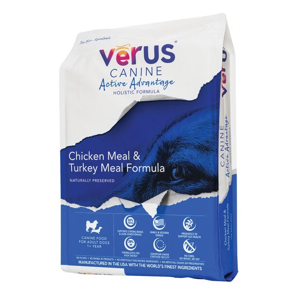 VeRUS Active Advantage Chicken Meal & Turkey Meal Holistic Formula provides complete and balanced nutrition for the life of your dog