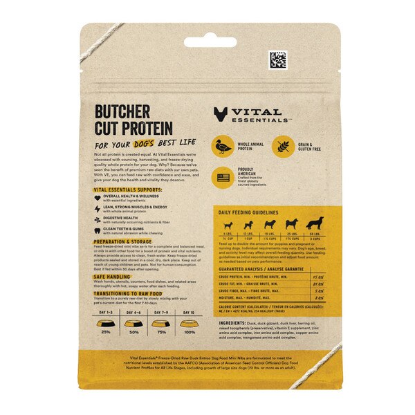 VITAL ESSENTIALS - FD MINI NIBS DUCK ENTREE DOG FOOD 5.5OZ.