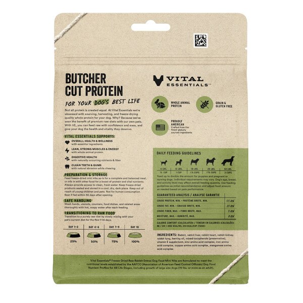 VITAL ESSENTIALS - FD MINI NIBS RABBIT ENTREE DOG FOOD 5.5OZ.
