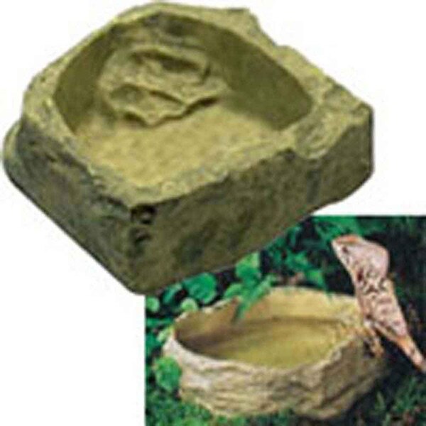 The small Exo Terra Water Dish has a natural looking granite design that makes an attractive addition to any terrarium. The rock-like design features built in steps to help terrarium animals and crickets from drowning and it is very stable to prevent tipping. The rock is made of a food-grade resin and the smooth and non-porous surface that will not harbor harmful bacteria.