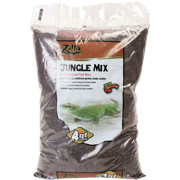 Jungle Mix provides a 100 percent natural, organic substrate for terrarium animals and plants. Ideal for tropical and forest habitats and perfect for burrowing reptiles. This bedding's composition promotes breeding, nesting and egg incubation with scents and textures close to those of natural forest environments. Blend of sphagnum moss and fir shavings absorbs and holds moisture for humidity-loving reptiles. Ideal for pets such as Frogs, Rainforest Geckos, Toads & Snakes. Completely biodegradable.