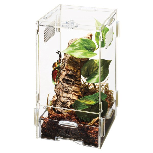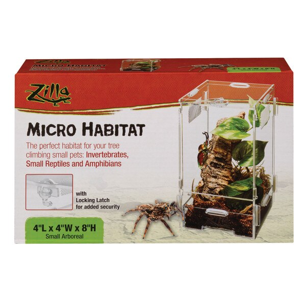 Whether you have a small reptile, invertebrate or amphibian, this Zilla Micro Habitat Insect Arboreal will make the perfect temporary home for your pet. This habitat is easy to assemble and is easily breaks down for hassle-free storing when not in use. It’s crafted from crystal clear acrylic, allowing you to view inside the habitat from every angle and your buddy to view outside. The molded base is designed to hold water or substrate and you can have peace of mind knowing that the locking latch adds an extra measure of security!