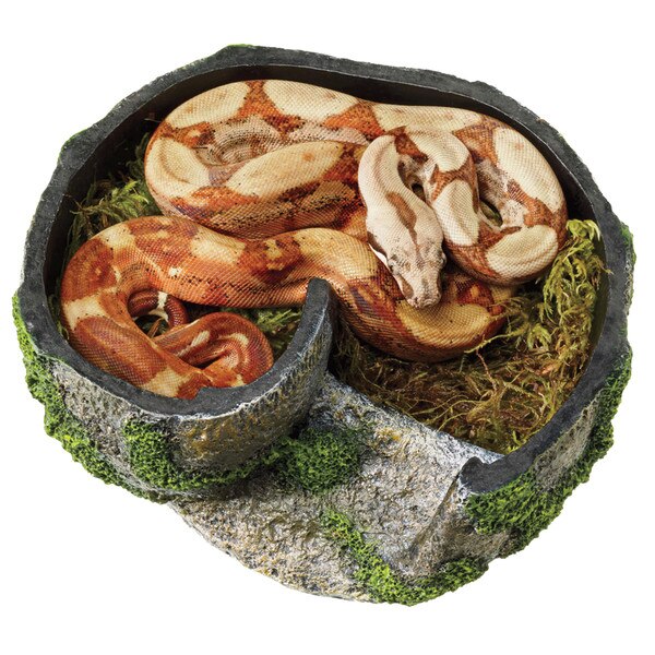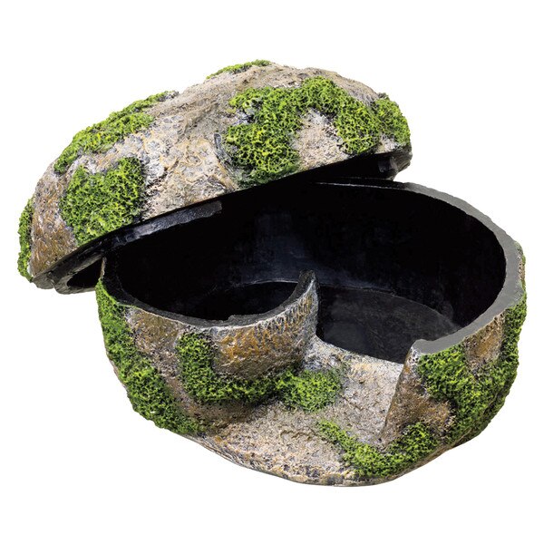 Humidity is important in helping reptiles shed their skin. When laying eggs, humidity is needed to keep them from drying out and perishing. These naturalistic hideaways provide humidity for your reptiles, as well as a dark den area to feel safe. Designed to keep the humidity from escaping, the large entrance is on the side making it easy for the animal to climb in, allowing for fresh air to be exchanged and help prevent molding. The entrance ramp and wall reduces the amount of light surrounding the animal which mimics a burrow and creates a more secure hiding space. The natural mossy appearance looks amazing and doubles as a rough surface for snakes and geckos to rub against and remove sloughing skin.